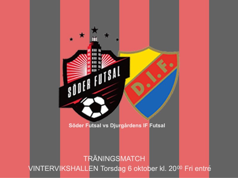 Det blir en skön derbykänsla i säsongens första träningsmatch. Söder Futsal ställs mot Djurgårdens IF Futsal. Detta blir första matchen för David Bergqvist som tränare för DIF Futsal. Vi kan bara gissa hur hans trupp kommer att se ut. Troligen behåller han kärnan från det Kåre som förra säsongen spelade i samma serie som Söder och kryddar med nyförvärv från Djurgårdens led. Förhoppningsvis dyker det upp någon gammal Djurgårdshjälte, kanske, kanske, mellan stolparna? För Söders coachduo är matchen en viktig del av förberedelserna inför årets SFL säsong och man behöver bland annat hitta en fungerande balans mellan nya och befintliga spelare. Välkomna till en tidig urladdning! Torsdag 6/10 kl 20:00 i Vintervikshallen.